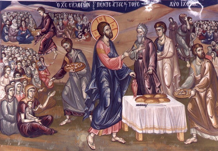 Σήμερα, αγαπητοί μου, μας διηγήθηκε ο ευαγγελιστής Ματθαίος το θαύμα του χορτασμού των πεντακισχιλίων. Ένα θαύμα που μας το διηγούνται και οι τέσσερις Ευαγγελισταί.